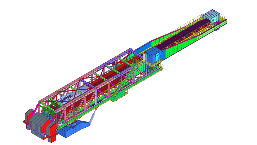 3D, verifica di interferenze e degli accoppiamenti tra i sottoassiemi dell’impianto, verifica della geometria finale della macchina.